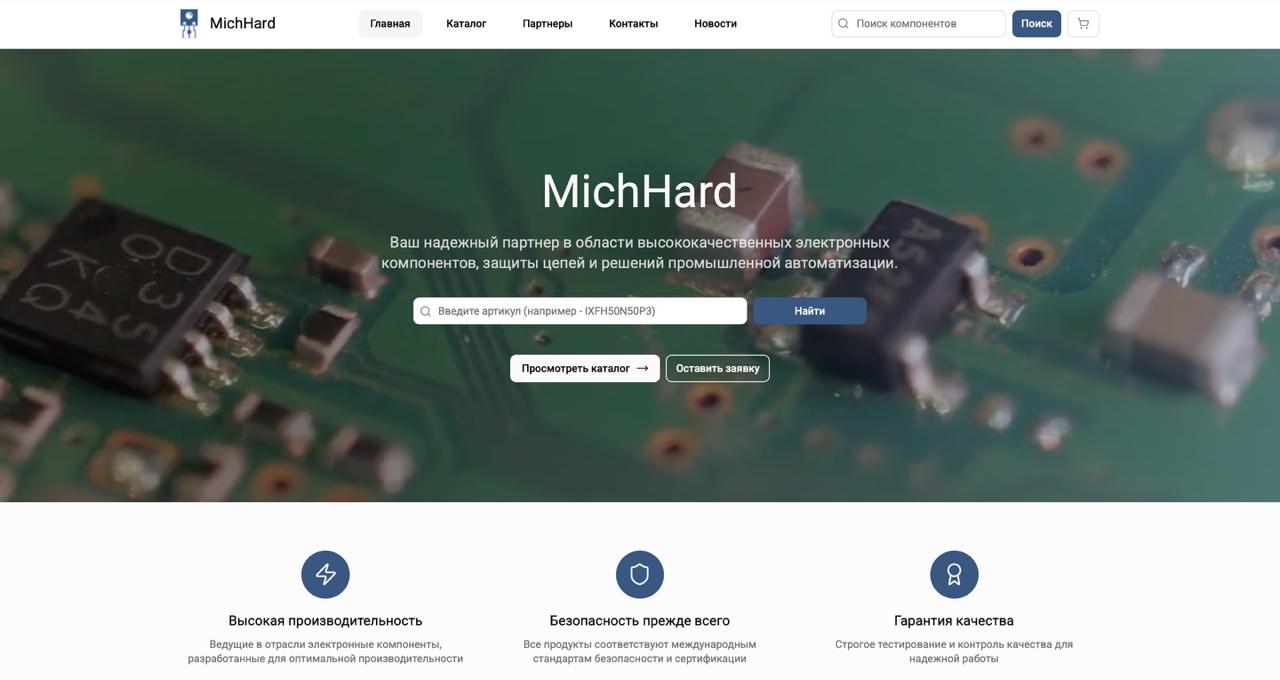 Было предложено решение в создании сайта, выполненного на HTML. Была разработана структура ресурса с удобной навигацией и оформлен каталог продукции с отдельными карточками для каждого радиокомпонента.