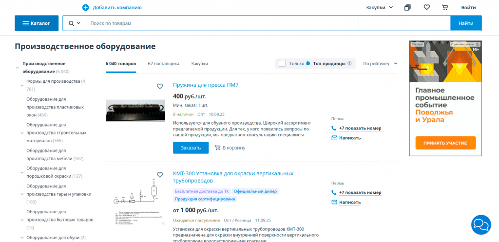 Интернет-площадка для оптовых заказов и работы с другими компаниями. Здесь акцент на личные кабинеты с договорами, прайс-листами, возможностью заказа больших партий и интеграцией с учетными системами.