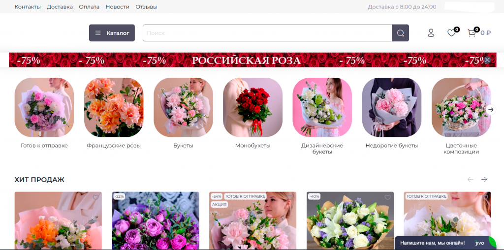 Сайт с фокусом на одной нише (например, электроника, косметика или одежда). Удобен для малого и среднего бизнеса, можно показать детальные карточки товаров, акции и красивые подборки.